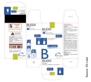 Le paclitaxel, un cytotoxique du groupe des taxanes utilisé par voie intraveineuse, est autorisé sous une forme dite classique et sous une forme liée à l’albumine. Les modalités d’administration dépendent de la forme utilisée. Sur la boîte et sur l’étiquette du flacon de Bugvi° (forme liée à l’albumine), l’avertissement de ne pas remplacer le paclitaxel lié à l’albumine par la forme "classique" est trop peu visible. De plus, l’expression du dosage de paclitaxel sur la boîte et sur l’étiquette du flacon prête à confusion. La mention de la concentration "5 mg/ml" est accolée à celle de la quantité de substance par volume total "100 mg/20 ml". Par ailleurs, sur la boîte et l’étiquette figure la mention "1 flacon de 50 ml" correspondant à la capacité totale du flacon et non au volume réel de la solution (20 ml), ce qui ajoute de la confusion.